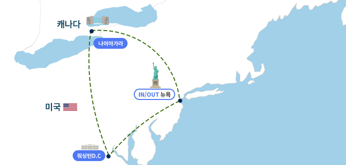 인천-뉴욕(1)-워싱턴/해리스버그(1)-나이아가라(2)-우드버리/뉴욕(2)-인천